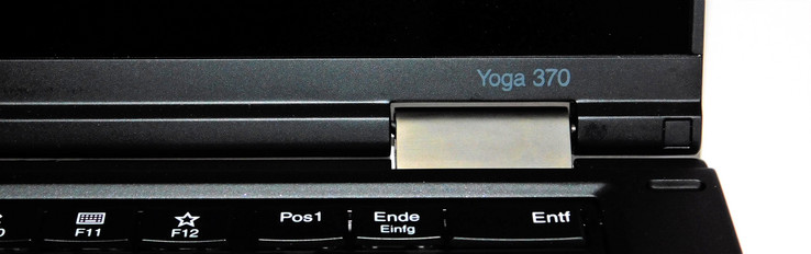 Ein spezielles Feature der Tastatur, das ausschließlich Modellen der ThinkPad-Yoga-Linie vorbehalten ist, soll nicht unerwähnt bleiben: Das Yoga 370 verfügt über eine sogenannte "Lift and Lock"-Tastatur. Dabei wird der Tastaturrahmen zwischen den Tasten im Tablet-Modus nach oben gedrückt, womit die Tastatur verriegelt ist und sich mehr wie eine ebene Fläche anfühlt als zuvor. Das ist einerseits ein Komfort-Feature, da man das Gerät so angenehmer halten kann, andererseits werden so aber auch die Tasten im Tablet-Modus vor Beschädigung geschützt.