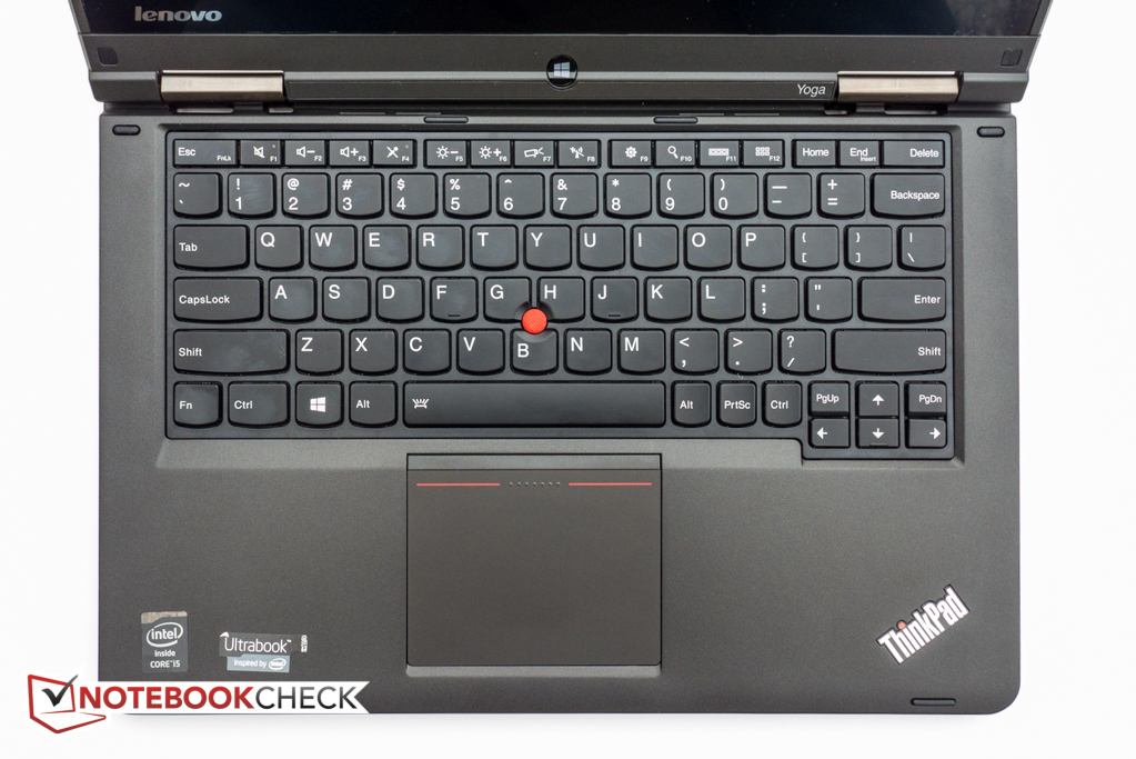 Unserer Meinung nach würde die Tastatur des ThinkPad Yoga selbst einigen größeren Notebooks gut zu Gesicht stehen. Trotz des begrenzten Hubs ist das Feedback gut, und die Tastatur eignet sich problemlos für Vielschreiber. Selbst bei energischen Anschlägen gibt die Tastatur kaum nach, und die zweistufige Hintergrundbeleuchtung erleichtert das Arbeiten bei schlechten Lichtverhältnissen.