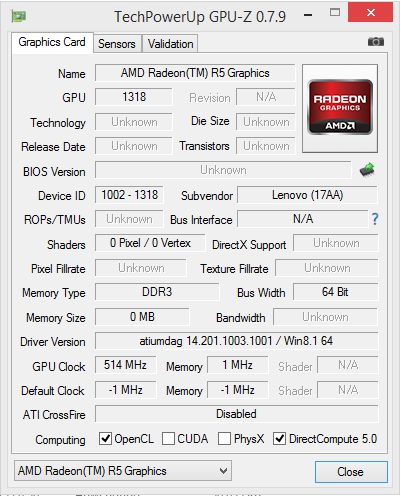 | Lenovo Thinkpad E555 Radeon R5 (Kaveri), A8-7100, Seagate ST500LM021-1KJ15 | Lenovo Thinkpad Edge E535-NZR5BGE Radeon HD 7640G, A8-4500M, WDC Scorpio Blue WD7500BPVT-08HXZT3 | Lenovo ThinkPad Edge E545-20B2000PGE Radeon HD 8650G + HD 8570M Dual Graphics, A10-5750M, WDC Scorpio Blue WD10JPVX-22JC3T0 | Fujitsu LifeBook A544 HD Graphics 4600, 4200M, Hitachi Travelstar Z5K500 HTS545050A7E680 | Acer TravelMate P255-M-54204G50Mnss HD Graphics 4400, 4200U, Seagate Momentus Thin ST500LT0 12-9WS142 | |