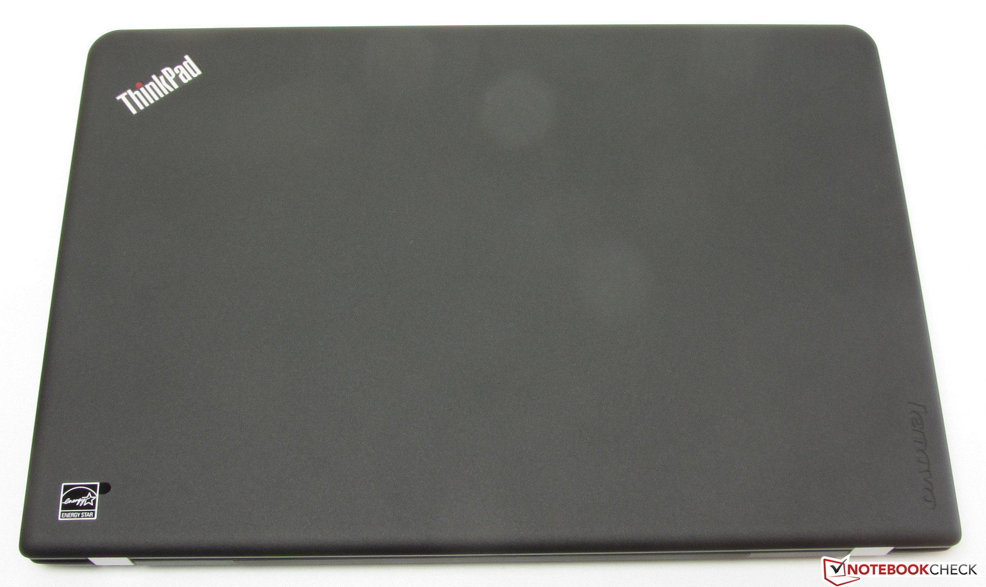 Das Thinkpad E555 besitzt dieselbe Grundform wie seine Vorgänger (Thinkpad Edge E545, Thinkpad Edge E535) und sieht ihnen sehr ähnlich. Es gibt aber viele Änderungen: So fällt das E555 einige Millimeter dünner aus als seine Vorgänger. Darüber hinaus ist das Gehäuse nicht mehr schwarz gefärbt, sondern kommt in einem sehr dunklen Anthrazitton. Der die Bildschirme der Vorgänger umschließende silberne Rahmen ist verschwunden. Zudem hat Lenovo den glänzenden Kunststoff, der die Tastenzwischenräume der Vorgängermodelle ausfüllt, durch matten Kunststoff ersetzt - endlich. Auch die Gummierung der Deckelrückseite wurde eingespart. Sie fällt beim E555 deutlich fester aus als bei den Vorgängern. Der Akku des Rechners ist nicht fest verbaut. Wie auch die Vorgänger ist das E555 mit zwei Wartungsklappen bestückt.