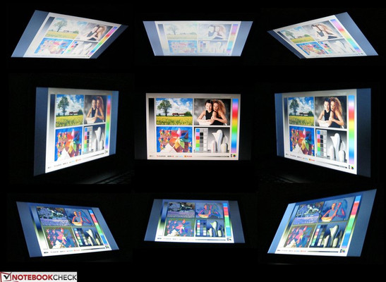Die Blickwinkelstabilität fällt notebook-typisch aus. Horizontal ist sie akzeptabel, vertikal, besonders beim Blick von unten, dagegen weniger. Beim Filmschauen, können Farbveränderung bereits bei kleinsten Abweichungen nach unten beobachtet werden. Da der Bildschirm weiter als 135 Grad geöffnet werden kann, sollte dies aber in unseren Augen kein Problem darstellen.