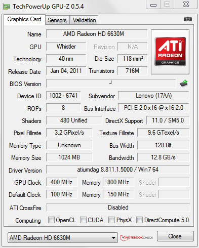 Die AMD Radeon HD 6630M positioniert sich als Mittelklasse-Grafik für Office- und Multimedia-Notebooks, die nicht vorrangig zum Spielen genutzt werden. Im aktuellen 3DMark 11 für Grafikeinheiten mit DirectX 11 Unterstützung erreicht die GPU nur 968 Punkte und bewegt sich im unteren Mittelfeld unserer Datenbank. Vergleichbare Alternativen von Nvidia sind die etwas schwächere GeForce GT 525M beziehungsweise die GT 540M Mittelklasse-GPU. Summa summarum eine Lösung für Personen, die nur gelegentlich spielen möchten.