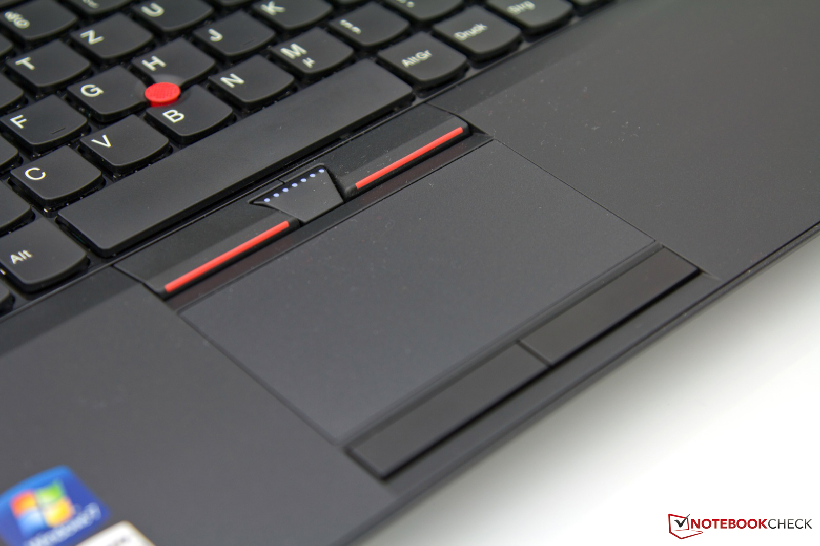 Auch bei dem Touchpad handelt sich um eine bekannte Bedieneinheit, die im Vergleich zum E420e aber etwas älter zu sein scheint, da das integrierte „UltraNav“ Touchpad von Synaptics noch mit zwei getrennten Mausersatztasten anstatt den integrierten Buttons kommt. Insgesamt überzeugt das Touchpad durch eine leicht angeraute und angenehme Oberflächenstruktur sowie der gebotenen Abmessung von 93 x 50 Millimeter (Diagonale: 105 Millimeter). Zusätzlich zu dieser Eingabemöglichkeit bietet natürlich auch dieses ThinkPad den obligatorischen roten Trackpoint im Tastaturfeld sowie drei weitere Bedienelemente über dem Touchpad. Die Qual der Wahl ist für einige Nutzer leicht, die anderen sind sich nicht sicher, was von dem roten Punkt zu halten ist. Wir empfehlen: Probieren geht über Studieren!