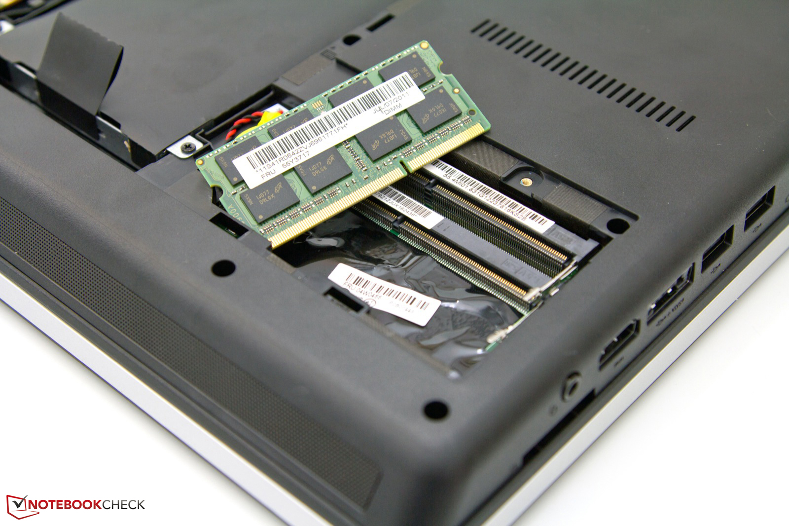 Über eine T-förmige Wartungsabdeckung an der Unterseite lassen sich mit wenigen Handgriffen das Speichermedium und der Arbeitsspeicher austauschen beziehungsweise erweitern. Der Gehäuselüfter ist nicht erreichbar und lässt sich bei zunehmender Verschmutzung nicht reinigen. Ebenso fehlt dem ThinkPad Edge E520 ein Docking-Connector an der Unterseite, wodurch es sich von den reinen Business-Lösungen unterscheidet.