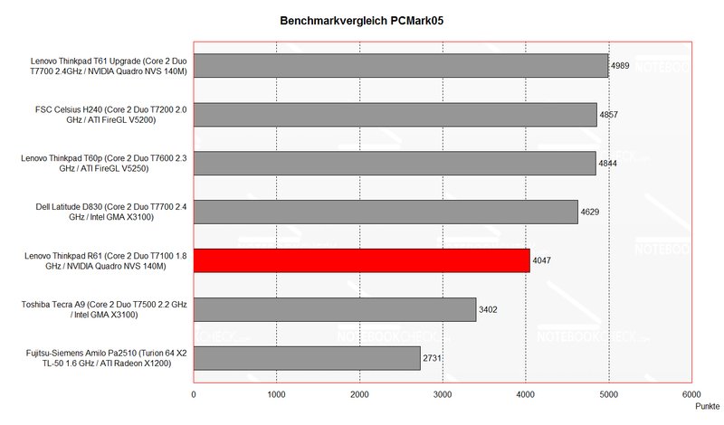 Auch die Leistungsdaten des R61 sprechen für das Gerät. Leistungsstarke Core 2 Duo Prozessoren und die NVidia NVS 140M bringen durchwegs gute Benchmarkergebnisse und damit mehr als ausreichend Leistung für den Office Bereich.