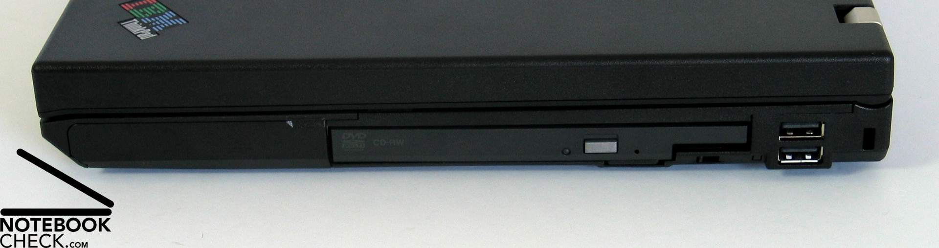 Die Anschlüsse des R61 befinden sich, fast ident zum T61, an der linken und rechten Gehäusekante. Positiv fällt dabei jedoch auf, dass sowohl die Audio Ports, als auch der Firewire Port an der linken Seite platziert wurden und die Vorderseite, abgesehen von einem Cardreader, frei von Anschlüssen bleibt. Wie auch bei den anderen Geräten der Thinkpad Serie bietet ein Docking Port an der Unterseite des Gerätes die Möglichkeit das Notebook über eine Docking Station mit weiteren Anschlussoptionen auszustatten.
