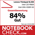 Leistungstechnisch ist das Thinkpad SL300 eher als Office Notebook einzustufen, wobei abhängig von der Wahl der CPU auch durchaus respektable Rechenleistung möglich ist. Limitiert wird die Performance bei diversen Anwendungen vor allem aufgrund der verbauten DDR2 Speichermodule, obwohl das Notebook bereits auf dem neuen Intel PM45 Chipsatz beruht und damit auch die schnellen DDR3 RAM-Module aufnehmen könnte.
