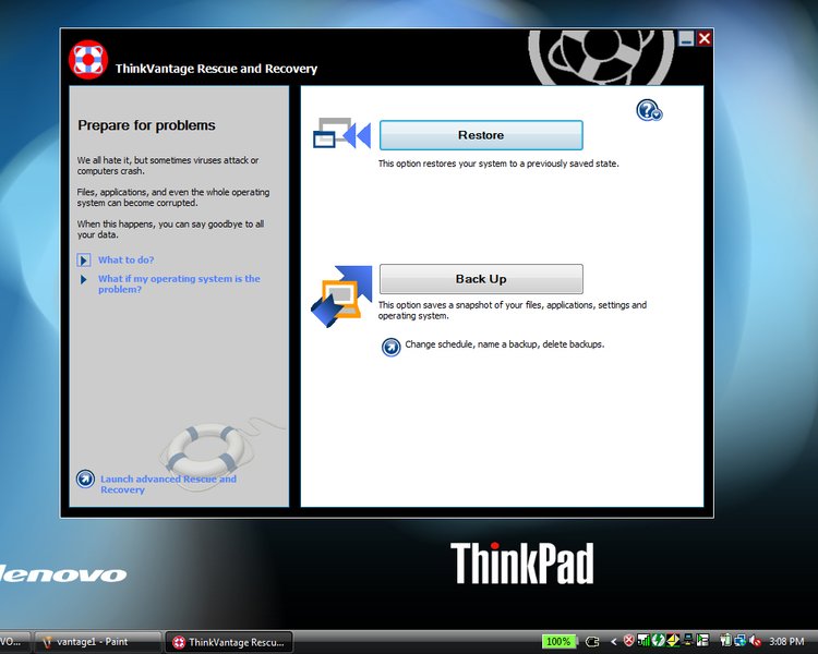 Überaus hilfreich ist auch die Rescue and Recovery Funktion die beim Anlegen von Datensicherungen zur Seite steht. Die Option eines Online-Daten-Backups kann mit dem ThinkPlus Secure Business Service Paket zusätzlich erworben werden.