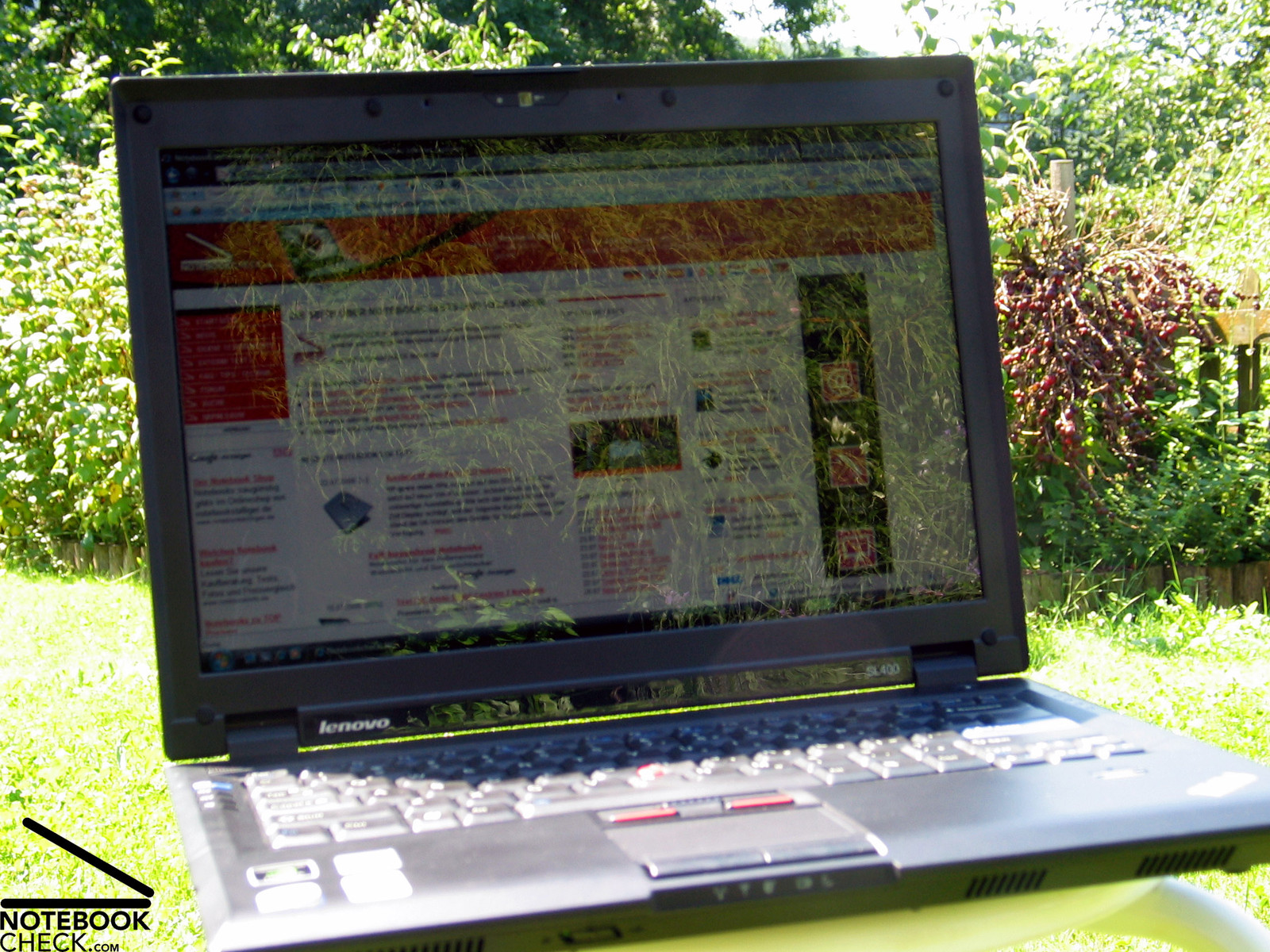 Für den Gebrauch im Freien empfiehlt sich die getestete Ausstattungsvariante des Thinkpad SL400 kaum. Zum einen bietet das Panel eine nur mäßige Helligkeit und zum anderen reicht diese kaum um mit den auftretenden Reflexionen und Spiegelungen bei hellen Umgebungslichtverhältnissen fertig zu werden. Es bleibt diesbezüglich abzuwarten, wie sich die matte Variante des Displays hinsichtlich Displayhelligkeit schlägt.