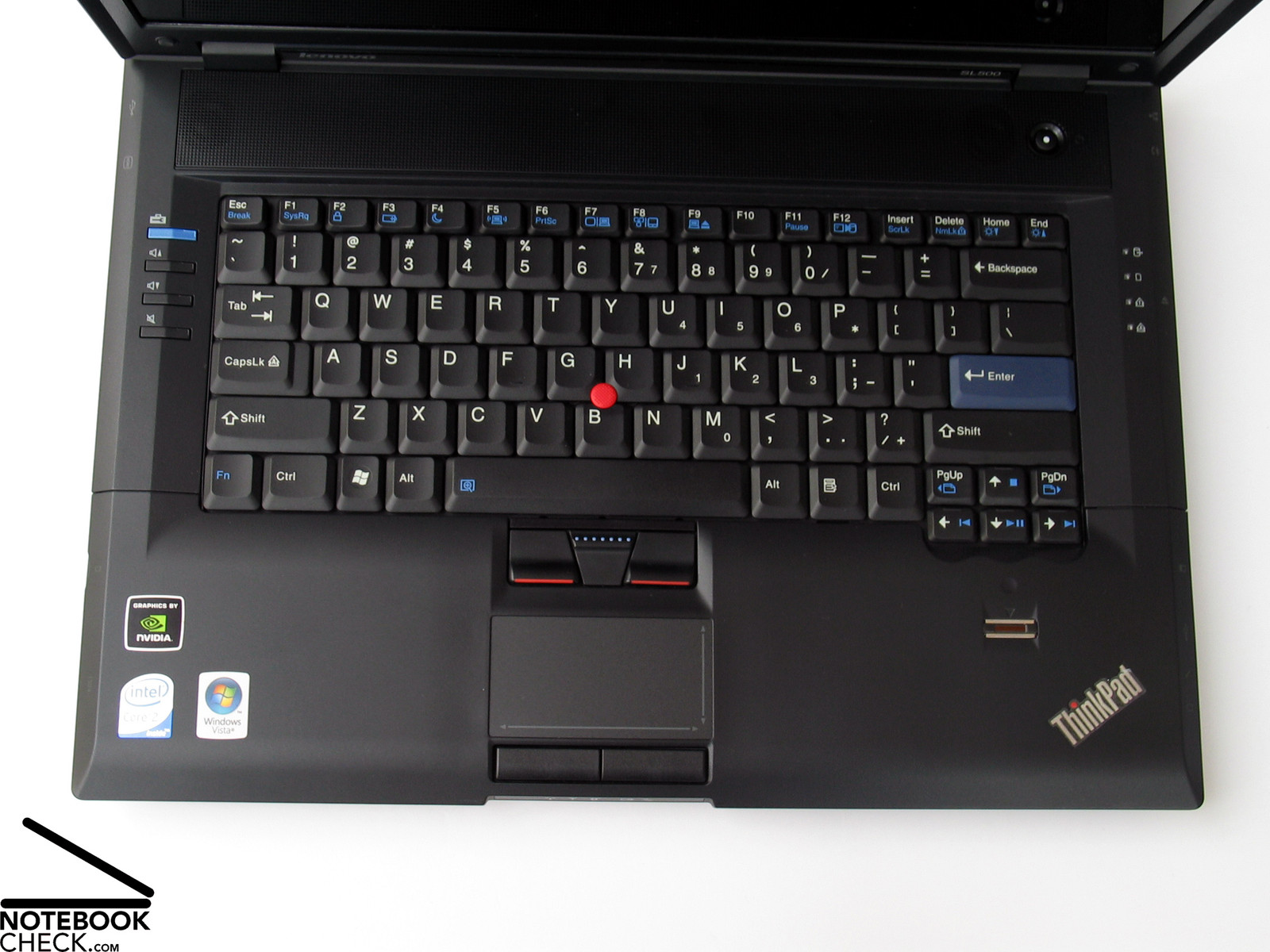 Die Tastatur unterscheidet sich ebenso von den höherwertigen Modellen. Dies gilt beispielsweise für das Tastenlayout, welches eine eher gedrängte Anordnung zeigt und nicht über die typische Thinkpad-Gruppierung einzelner Funktionstasten verfügt. Etwas Kosten reduzierend wirkt sich hierbei aus, dass in allen SL-Modellen offenbar dieselbe Tastatureinheit eingesetzt wird. Abgesehen von einer teils deutlichen Durchbiegung der Tastatur und einer klappernden Leertaste kann das SL500 aber in Bezug auf das Tippgefühl an die übrige Modellpalette einigermaßen anschließen.