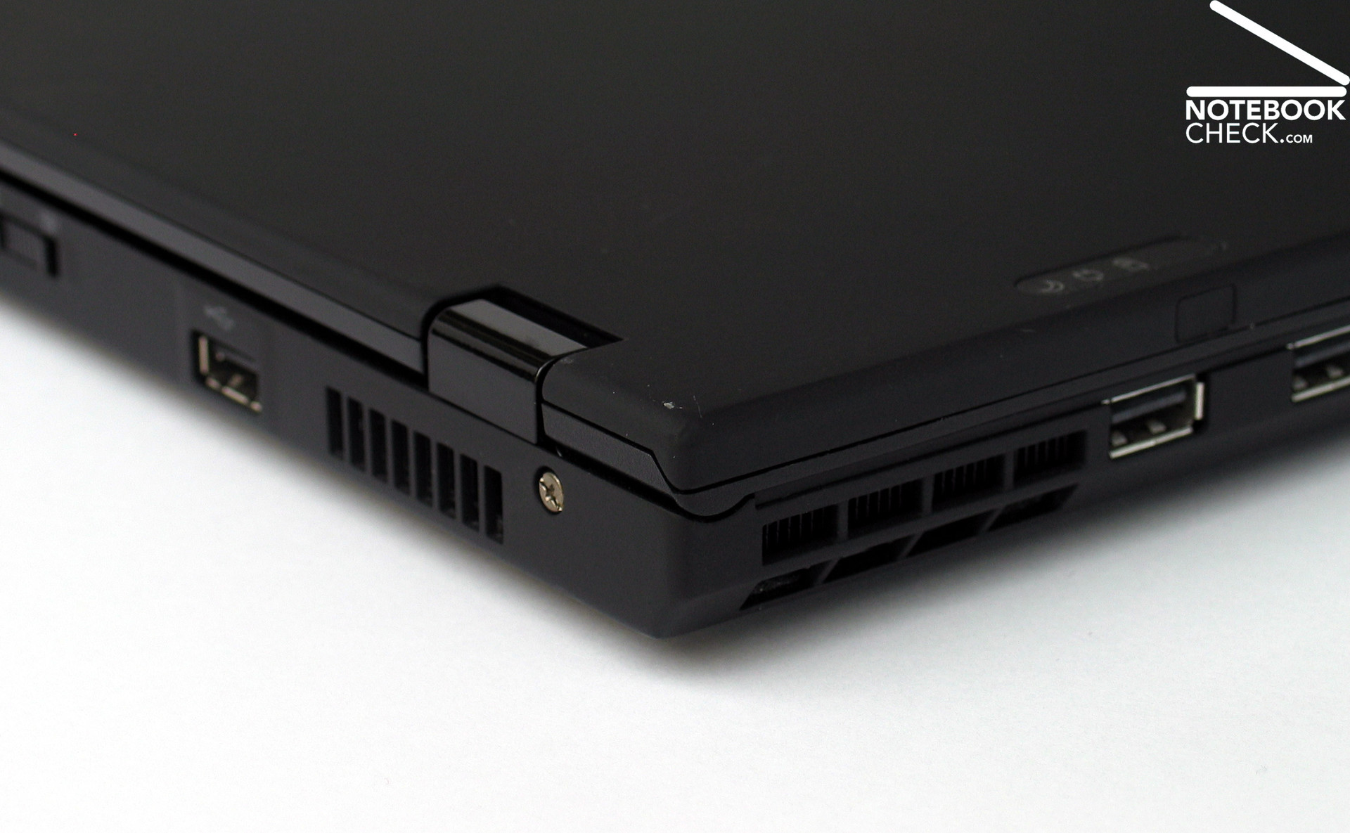Nicht lumpen lässt sich das Thinkpad X300 auch beim Verriegelungsmechanismus des Displays. Auch hier bietet Lenovo entgegen dem allgemeinen Trend zu selbstschließenden Displayscharnieren nach wie vor zwei klassische Verschlusshaken an. Aufgrund ihrer dezentralen Positionierung bieten diese auch im Eckbereich einen sicheren Halt. Ein leichtes Wackeln des Displays im geschlossenen Zustand konnte aber dennoch leider nicht verhindert werden.
