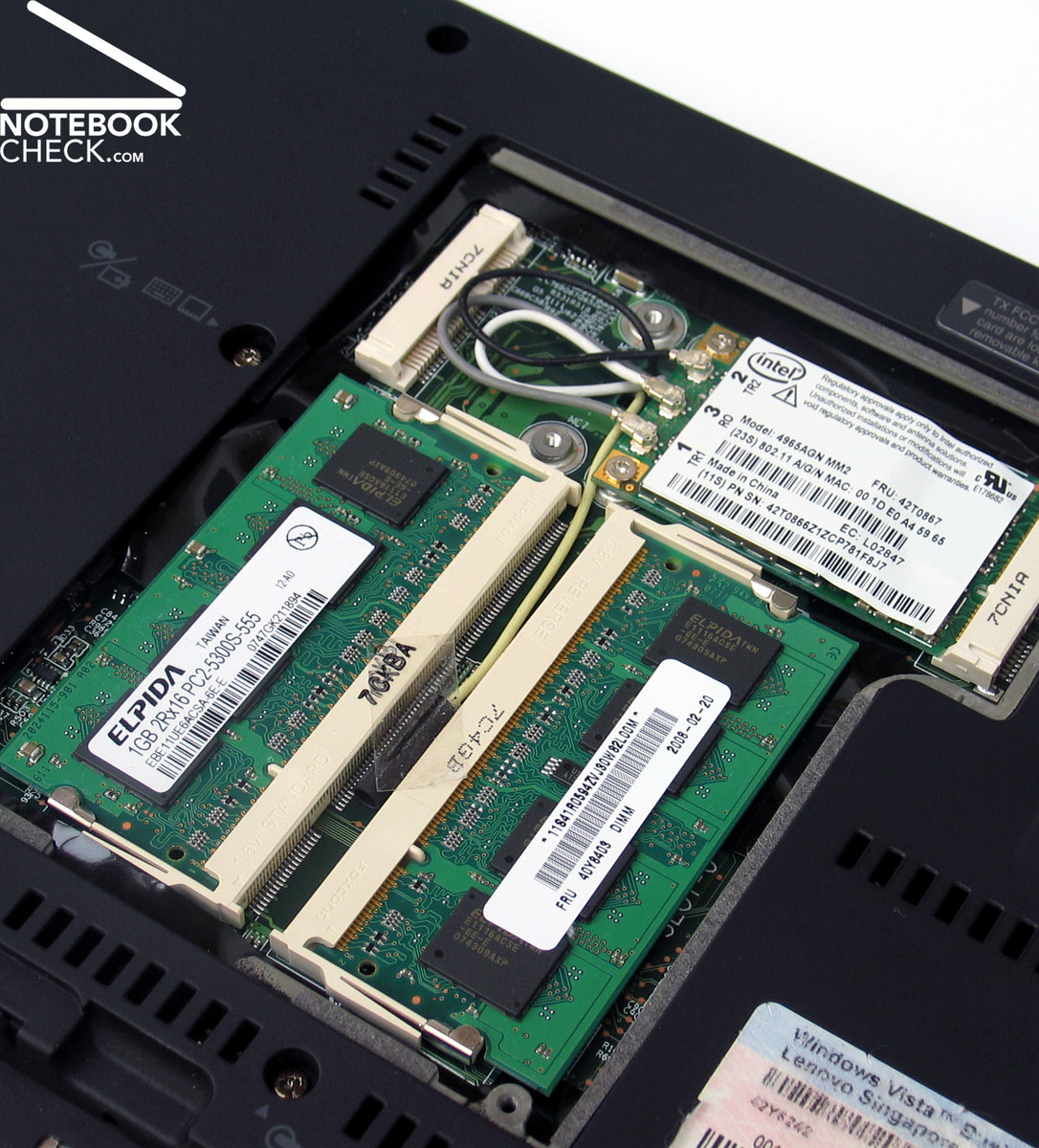 So bietet das X300 insgesamt zwei Gigabyte Arbeitsspeicher (DDR2, PC5300, 667 MHz) aufgeteilt auf zwei Speicherslots. Zwar kann das Notebook auf insgesamt 4GB aufgerüstet werden, in diesem Fall müssten aber beide Riegel durch jeweils zwei neue 2048MB Speicherchips ersetzt werden.