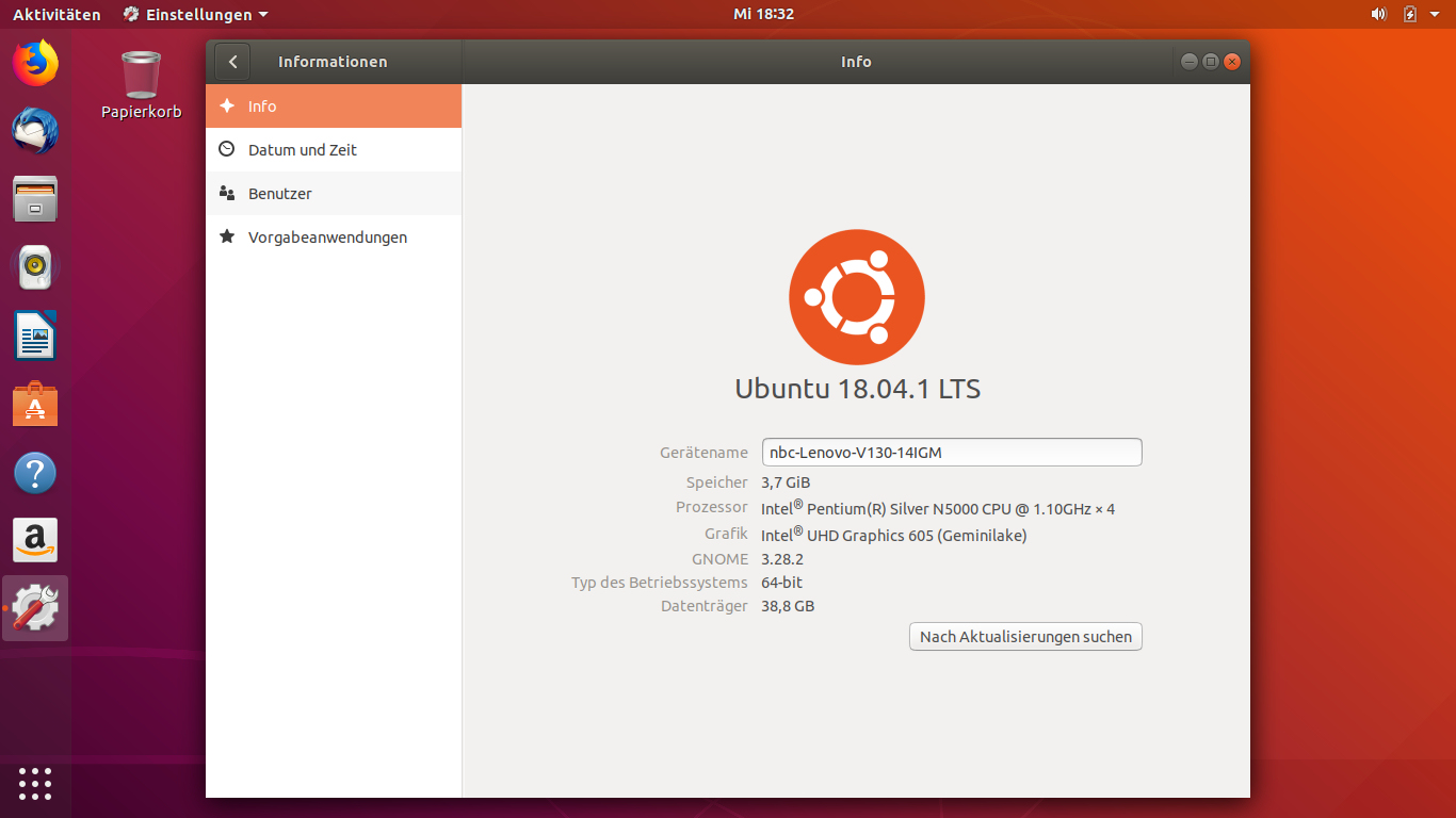 Alternativ kann Lenovos 14-Zöller mit Linux betrieben werden. Wir haben probeweise Ubuntu 18.04.1 LTS installiert. Die Installation läuft problemlos von der Hand. Fast die gesamte Hardware des Rechners wird erkannt und eingerichtet. Das umfasst auch die Funktionstasten zur Helligkeits- und Lautstärkeregulierung. Der Videodecoder des verbauten SoCs steht ebenfalls direkt nach der Installation zu Verfügung: 4k-Youtube-Videos werden butterweich innerhalb des Browsers wiedergegeben. Einzig das Clickpad funktioniert nicht.