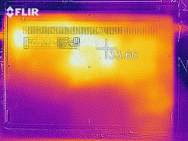 (+) Die Handballen und der Touchpad-Bereich sind mit gemessenen 25.6 °C kühler als die typische Hauttemperatur und fühlen sich dadurch kühl an.