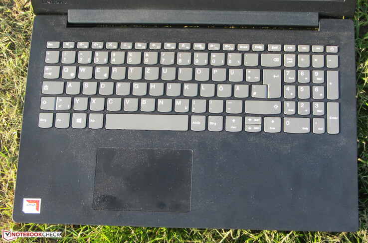Lenovo verpackt die Technik des V145-15AST im gleichen Gehäuse, welches auch bei der Ideapad-320-15-Serie Verwendung findet. Unterschiede bestehen bei der Farbe und der Oberfläche: So ist unser aktuelles Testgerät matt-schwarz gefärbt und die Oberflächen sind mit einer Leinentextur versehen. An der Verarbeitung gibt es nichts Großartiges zu bemängeln. Auf Seiten der Stabilität besteht aber Verbesserungsbedarf. So kann die Baseunit zu deutlich verdreht werden. Hier wäre eine größere Steifigkeit geboten. Über eine Wartungsklappe verfügt der Rechner nicht. Der Akku ist fest verbaut.