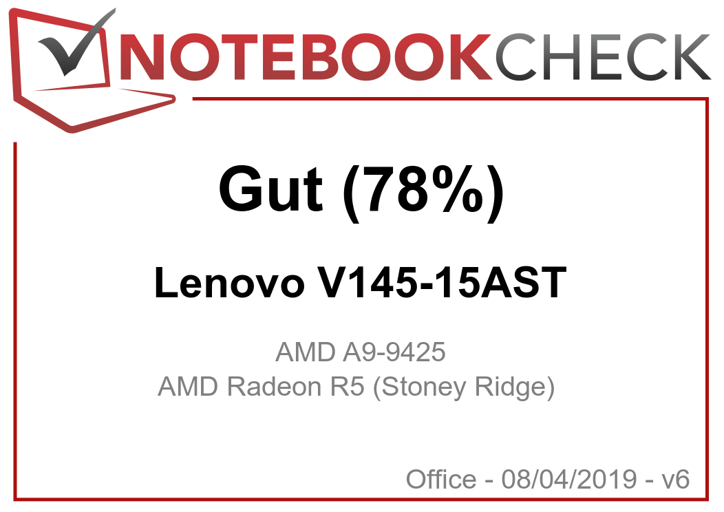 Lenovo bestückt das V145-15AST mit einer A9-9425 (Stoney Ridge) APU der Firma AMD. Mit einem Überangebot an Rechenleistung kann die APU nicht aufwarten, für einfache Anwendungen aus den Bereichen Office und Internet reicht es aber. Der CPU-Teil der APU besteht aus einem Zweikernprozessor, der mit einer Basisgeschwindigkeit von 3,1 GHz arbeitet. Mittels Turbo ist eine Steigerung auf bis zu 3,7 GHz möglich.