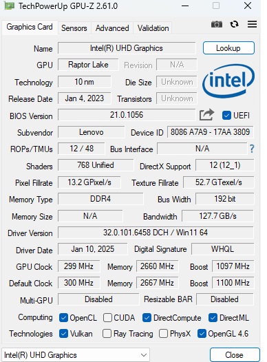 | Lenovo V17 G4 IRU UHD Graphics Xe G4 48EUs, U300 | Lenovo IdeaPad 3 15ITL05 81X80074GE UHD Graphics Xe G4 48EUs, i3-1115G4 | Lenovo IdeaPad Slim 3i 15IRU9 Iris Xe G7 80EUs, Core 5 120U | Lenovo IdeaPad Slim 5 16IRU9 Iris Xe G7 96EUs, Core 7 150U | |
