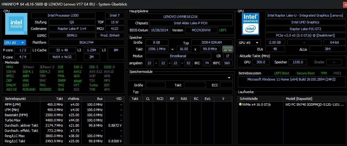 Achtung: Unter der Bezeichnung V17 G4 IRU tummeln sich aktuell zwei Geräte auf dem Markt. Während ein Modell den Core i5-1335U beherbergt, ist die von uns getestete Version mit einem (langsameren) Intel U300 bestückt.