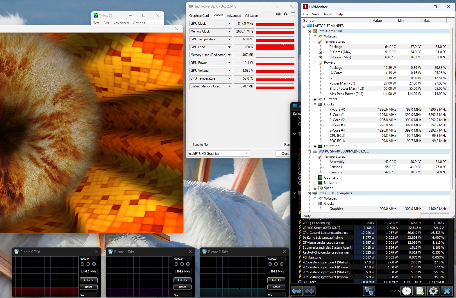 Der Energiebedarf ist für die Leistung des Prozessors noch halbwegs angemessen. 31 bis 58 Watt unter Last orientieren sich am alten Core i3-1115G4. Im Idle-Modus gab unser Messgerät zwischen 4 und 12 Watt aus – ebenfalls vertretbare Werte.