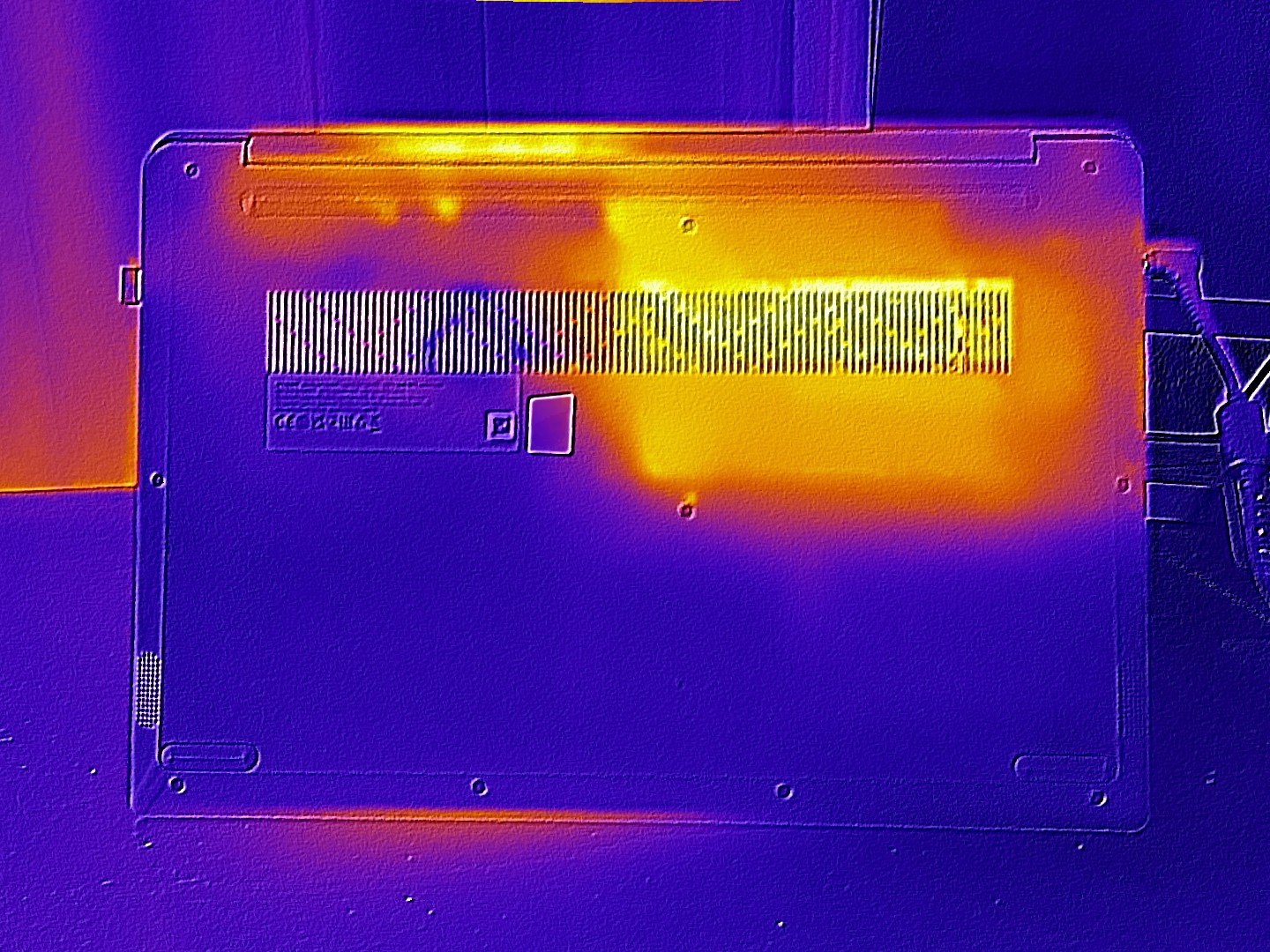 (±) Auf der Unterseite messen wir eine maximalen Wert von 45 °C (im Vergleich zum Durchschnitt von 36.8 °C).