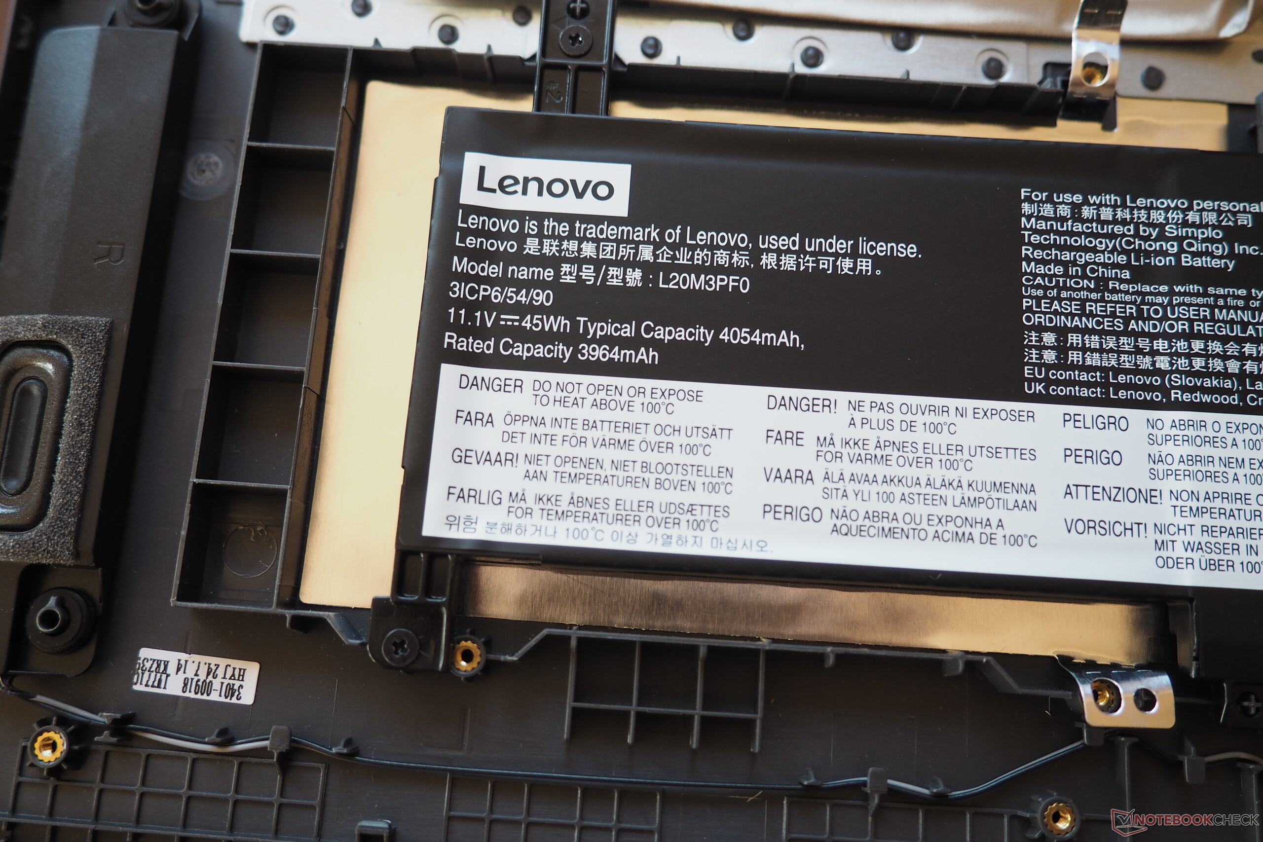 Vor dem Entfernen der Bodenplatte müssen 10 Torx-Schrauben gelöst werden. Wie der Innenaufbau gestaltet ist, können Sie den Fotos entnehmen. Der freie RAM-Slot verbirgt sich beispielsweise unter einer Abdeckung. Als SSD verwendet Lenovo trotz vorhandenem 2280er-Slot nur ein 2242er-Modell.