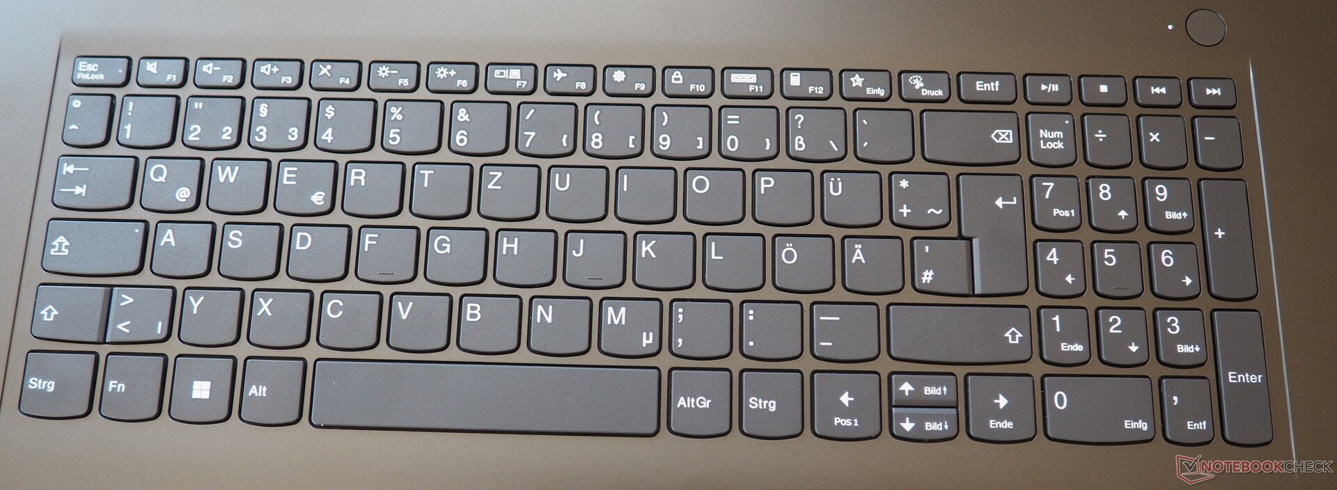 Wie eingangs erwähnt, können sich die Eingabegeräte durchaus sehen lassen. Die Tastatur bietet das typische Lenovo-Design, was auch für die Form der Tasten gilt. Das Tippgefühl macht so manch teurerem Notebook Konkurrenz und ist nach unserer Auffassung auch für Vielschreiber geeignet. Dank des üppigen Platzangebots integriert Lenovo einen vollwertigen Nummernblock, dessen Tasten allerdings etwas schmäler als beim Hauptblock sind. In dunklen bzw. schlecht ausgeleuchteten Umgebungen wäre indes eine Beleuchtung hilfreich. Letztere sollte heutzutage Standard sein.
