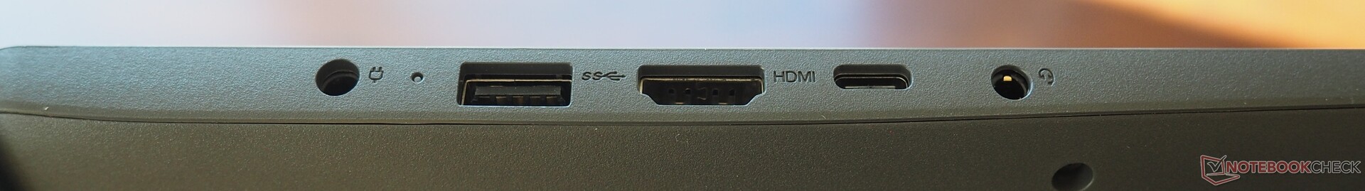 Abseits eines RJ45-Ports hat das V17 alle derzeit typischen Anschlüsse an Bord. Neben einer Audio-Buchse erhalten Käufer auch einen SD-Kartenleser und einen HDMI-Port (leider nur 1.4b). Hinzu kommen zwei USB-A-Ports (1x 2.0, 1x 3.0) und ein USB-C-Port mit DisplayPort- und PowerDelivery-Funktionalität. Da sich die Schnittstellen in der hinteren Hälfte der Seitenflächen tummeln, gehen angesteckte Kabel nicht im Weg um.