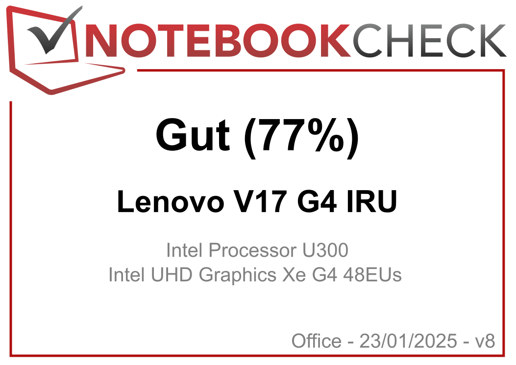 Für den veranschlagten Preis von rund 450 Euro macht das Lenovo V17 G4 IRU einen mehr als ordentlichen Eindruck - zumindest, wenn man die magere Grafikleistung der iGPU (UHD Graphics Xe G4 mit 48EUs) ausklammert, welche deutlich hinter die Iris Xe Graphics G7 mit 80 bzw. 96EUs zurückfällt. Das Gehäuse besteht zwar nur aus Kunststoff, wirkt optisch aber wie aus Metall gefertigt. Dazu gesellen sich eine brauchbare Schnittstellenauswahl und gute Eingabegeräte (wobei die Tastatur ohne Beleuchtung auskommen muss), die in diesem Preisbereich nicht selbstverständlich sind.