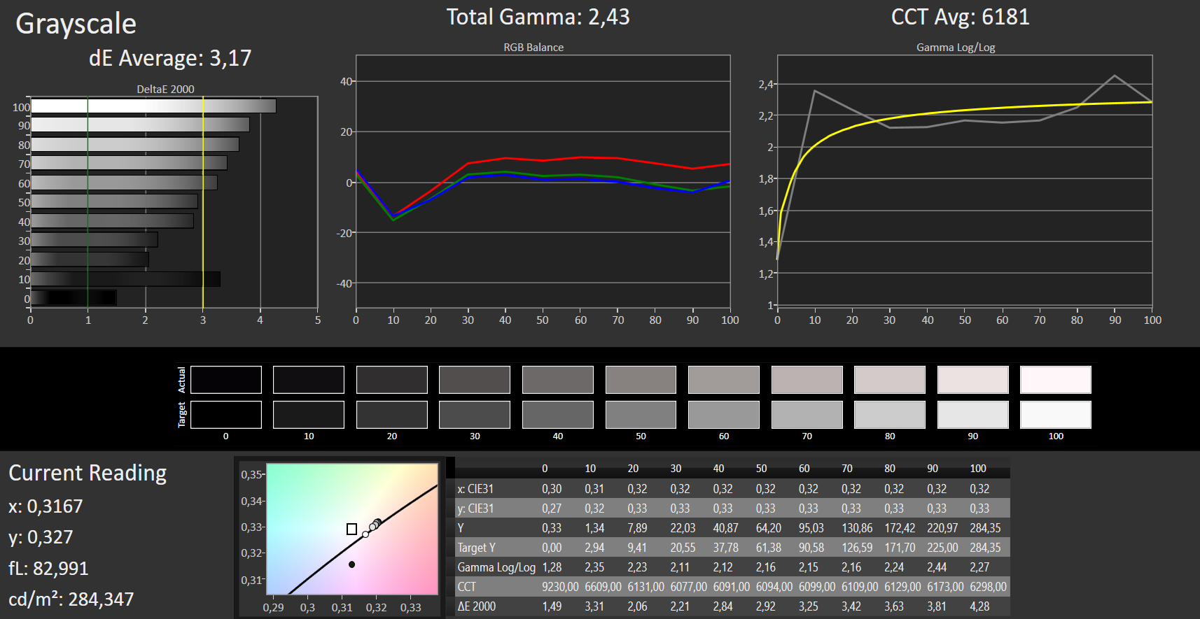 ΔE Greyscale Calman: 3.13 | ∀{0.09-98 Ø5}