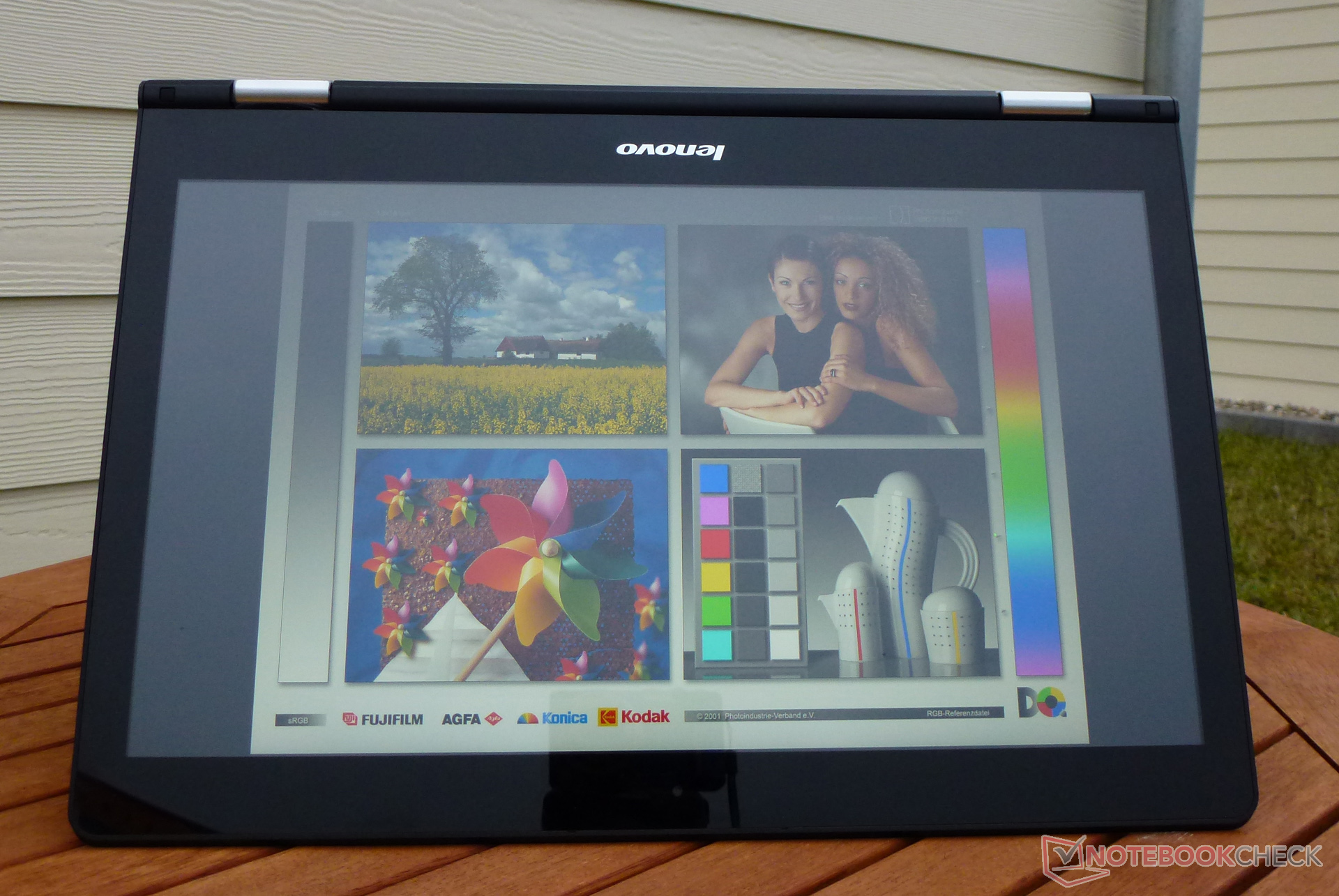 Der sRGB-Farbraum wird vom Lenovo Yoga 500-14ISK zu 61 % abgedeckt. Beim AdobeRGB sind es 39 %. Für professionelle Grafik- und Fotobearbeiter werden diese Werte nicht ausreichen. Mit einem DeltaE-Wert von 6,3 kommt eine ungenaue Farbdarstellung hinzu. Dieser Wert ist allerdings immer noch deutlich besser als bei den meisten Low-Cost-TN-TFTs, die sich auf dem Markt tummeln. Das Lenovo Yoga 500-15IBD, auch ausgestattet mit einem IPS-Panel, kommt aber trotzdem nicht an die Werte des Test-Samples heran. Das Toshiba wie auch das HP, die beide TN-Panels haben, werden deutlich in die Schranken gewiesen. Am besten aufgestellt ist das Surface Pro 4 und kann sich mit guten Werten vor unserem Lenovo platzieren. Das IPS-Display des Lenovo Yoga 500-14ISK liegt im Vergleich im oberen Mittelfeld.