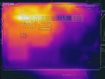 (±) Auf der Unterseite messen wir eine maximalen Wert von 44.6 °C (im Vergleich zum Durchschnitt von 39.2 °C).