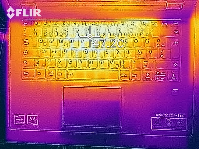 (+) Die Handballen und der Touchpad-Bereich sind mit gemessenen 27.6 °C kühler als die typische Hauttemperatur und fühlen sich dadurch kühl an.