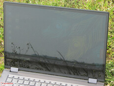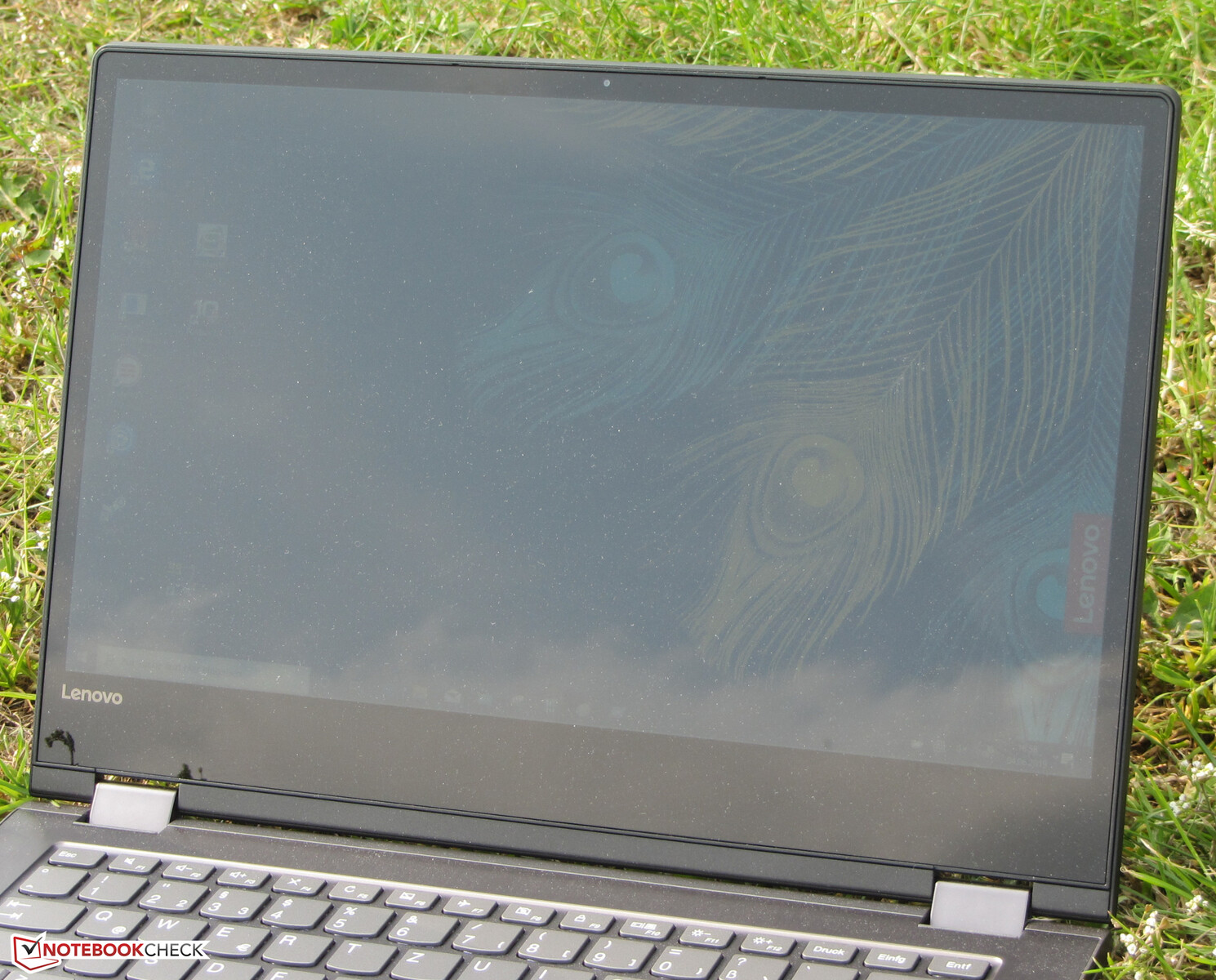 Lenovo stattet das Convertible mit einem blickwinkelstabilen IPS-Panel aus. Somit ist der Bildschirm aus jeder Position heraus ablesbar. Ein Ablesen des Displays im Freien ist kaum bis gar nicht möglich. Die spiegelnde Displayoberfläche und die geringe Leuchtkraft des Bildschirms verhindern es.