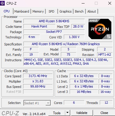 Der Ryzen 5 8640HS gehört zur Mittelklasse, was auch für 16 GB RAM und 512 GB SSD-Kapazität gilt.