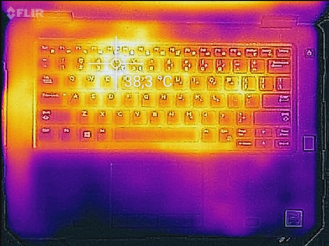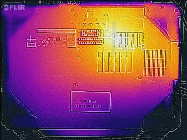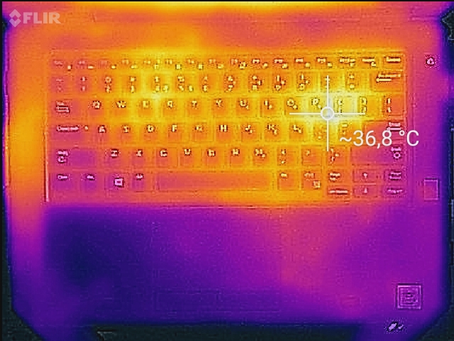 (+) Die Handballen und der Touchpad-Bereich sind mit gemessenen 29.9 °C kühler als die typische Hauttemperatur und fühlen sich dadurch kühl an.