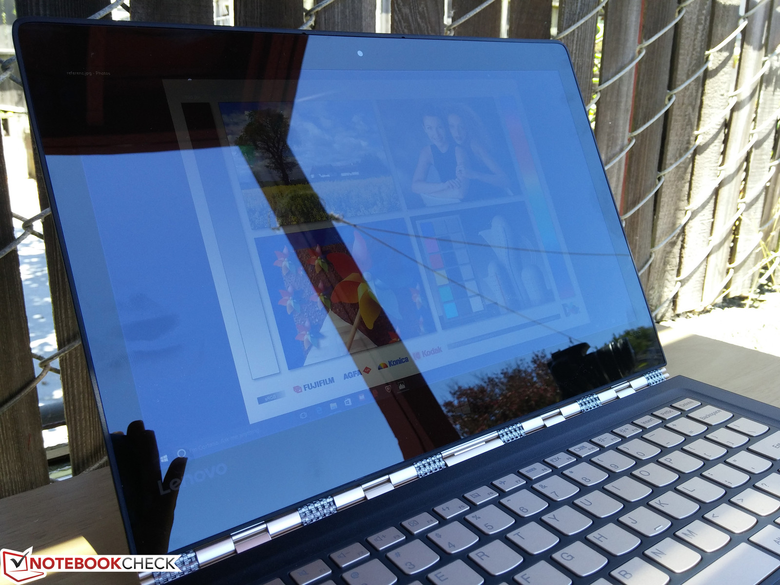 Aufgrund des spiegelndes Displays ist die Outdoor-Tauglichkeit trotz der hohen Helligkeit nur durchschnittlich. Reflexionen und Spiegelungen sind im Freien praktisch kaum zu vermeiden. Hier hilft das 360-Grad-Scharnier ein wenig, in der Sonne wirkt das Bild aber schnell ausgewaschen.