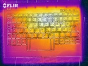 Die Oberflächentemperaturen bleiben halbwegs moderat. Zwar wird das C930 schon im Idle und auch unter Last etwas wärmer als der Vorgänger, angesichts der stark gestiegenen Leistung sind die geringen Temperaturunterschiede aber löblich. Da man dem Convertible vermutlich selten eine starke Last zumuten wird, sollte es auch selten wirklich heiß werden. Ohne größere Last wird es etwa 28 Grad Celsius warm, nur in Extremsituationen kann die Oberflächentemperatur auf bis zu 44 Grad ansteigen, insbesondere im rechten, bildschirmnahen Bereich. Die Handballenauflagen bleiben indes stets im angenehmen Temperaturbereich.