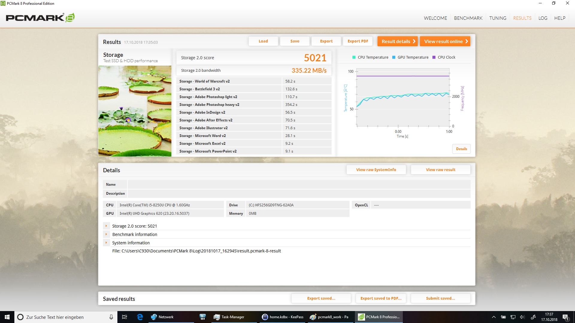 | Lenovo Yoga C930-13IKB UHD Graphics 620, i5-8250U, SK hynix PC401 HFS256GD9TNG | Lenovo Yoga 920-13IKB-80Y7 UHD Graphics 620, i5-8550U, Samsung PM961 MZVLW256HEHP | Lenovo Yoga 720-13IKB UHD Graphics 620, i5-8550U, Toshiba XG4 NVMe (THNSN5512GPUK) | Asus ZenBook Flip 14 UX461UA UHD Graphics 620, i5-8250U, SanDisk SD8SN8U256G1002 | Fujitsu Stylistic Q738 UHD Graphics 620, i5-8350U, Samsung SSD PM871b MZNLN256HAJQ | HP Spectre x360 13-ae048ng UHD Graphics 620, i5-8550U, Toshiba NVMe THNSN51T02DUK | |