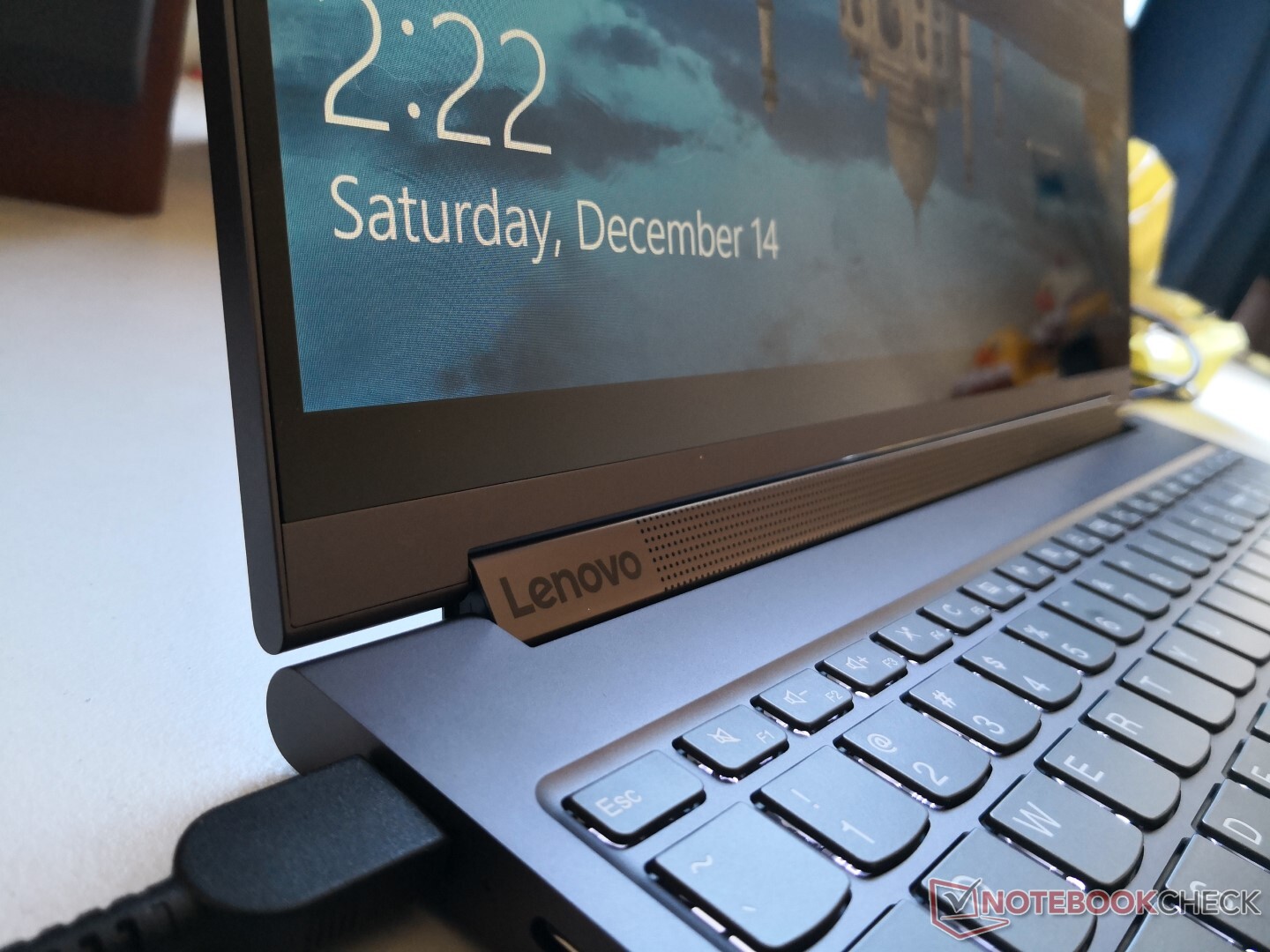 Das C940 führt das vom Yoga C930 aus dem letzten Jahr eingeführte Konzept eines Displayrands mit Notch und des Scharniers mit Lautsprecher fort. Ersterer vereinfacht es Nutzern den Deckel zu öffnen, während durch letzteres ein besseres Audioerlebnis erzielt wird. Allerdings vermuten wir, dass Lenovo irgendwann auf die markante Notch verzichten wird, da Webcams (wie die neuesten XPS-13- und HP-Spectre-13-Designs zeigen) mittlerweile kleiner geworden sind.