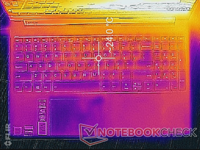 Die Oberflächentemperaturen der linken und rechten Seite unterscheiden sich bei niedriger Systemlast im Allgemeinen nicht. Im Gaming-Betrieb werden in der Mitte des Laptops 38 bis 42 °C erreicht, womit die Temperaturen kühler bleiben als beim XPS 15 und dem HP Spectre x360 15, die stellenweise beide bis zu 50 °C warm werden können. Die Ecken und Kanten werden nie unangenehm warm, wodurch der Tablet-Modus immer eine Option bleibt.