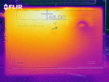 (-) Die maximale Temperatur auf der Oberseite ist 46.1 °C. Im Vergleich liegt der Klassendurchschnitt bei 34.3 °C (von 21.2 bis 62.5 °C für die Klasse Office).
