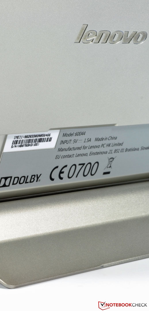 Das Lenovo Yoga Tablet 8 besteht größtenteils aus silberfarbenem Kunststoff, nur der Ständer und die physikalischen Tasten sind aus Aluminium gefertigt. Die Rückseite ist geriffelt ausgeführt, was die Griffigkeit erhöht. Wie beim großen Bruder Lenovo Yoga Tablet 10 kämpft auch das Testgerät mit ungenau eingepassten Tasten, die viel Spiel haben. Zudem lässt sich das Yoga Tablet 8 leicht verwinden und produziert auf Druck an der Rückseite hin Verfärbungen am Bildschirm.