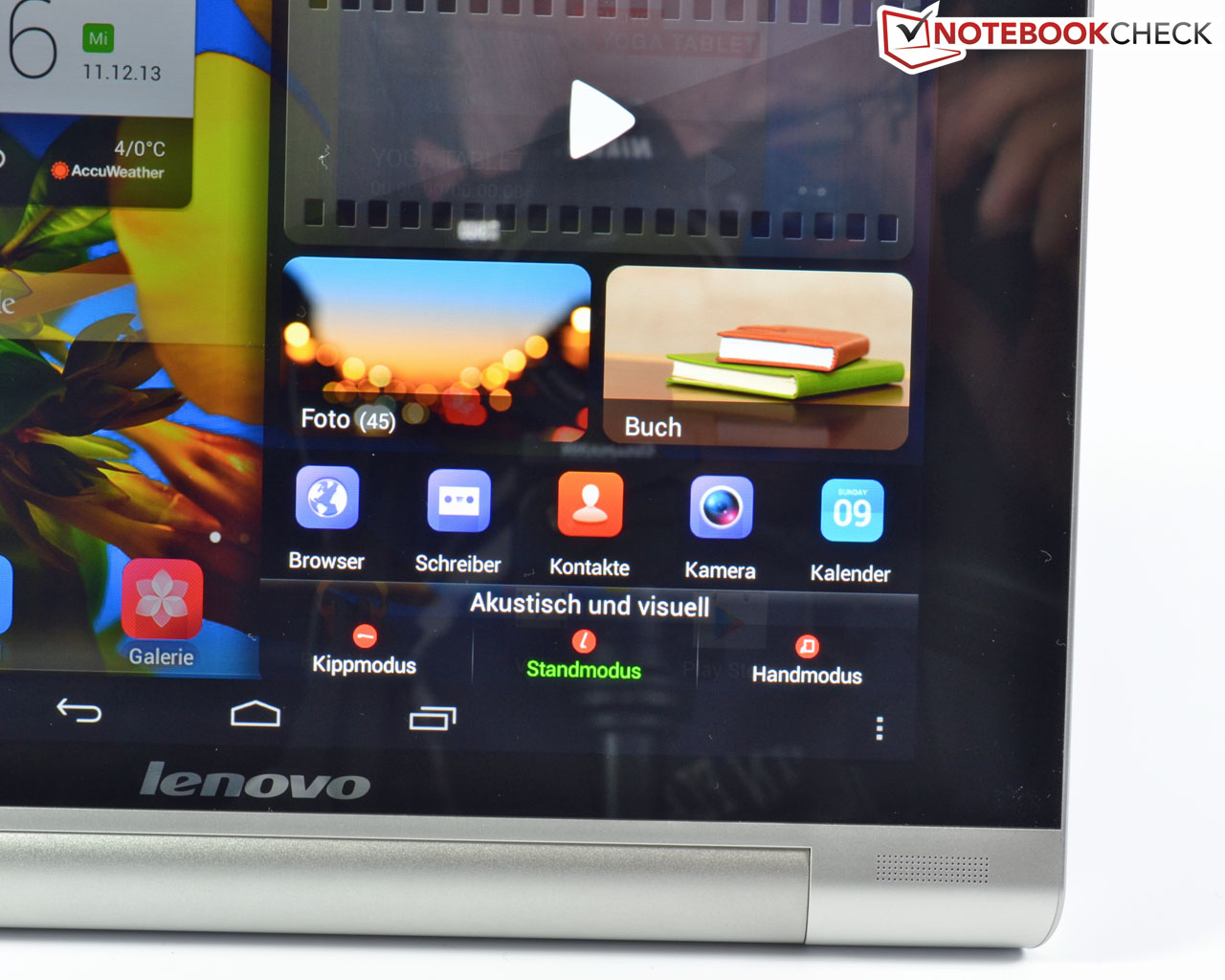 Das Yoga Tablet 8 verfügt über einen 8 Zoll großen IPS-Touchscreen mit einer Auflösung von 1.280 x 800 Bildpunkten. Hier haben Kontrahenten wie das Google Nexus 7 oder das Amazon Kindle Fire HDX 7 mit jeweils 1.920 x 1.200 Pixeln mehr zu bieten, andere Mitbewerber wie das Samsung Galaxy Tab 3 8.0 SM-T310 oder das Bullmann Tab 8 Mini AQQI setzen auf dieselbe niedrige Auflösung.