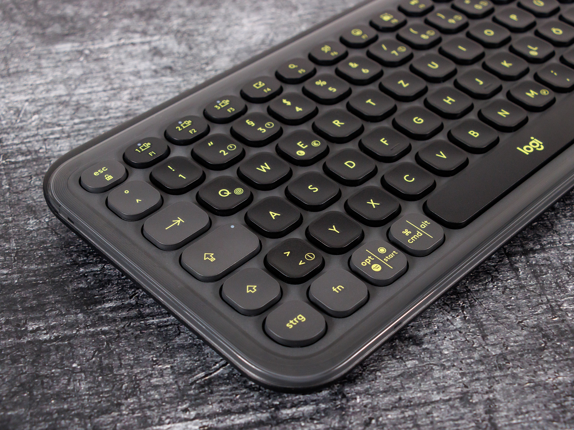 Dennoch lässt sich mit der Logitech-Tastatur richtig gut tippen und die Anschläge sind zwar hörbar, jedoch nicht sonderlich laut, aber auch nicht so leise wie bei den MX Keys. Ein weiterer Plus-Punkt sind die enorm langen Batterielaufzeiten von bis zu drei Jahren. Außerdem kann per Tastendruck schnell zwischen bis zu drei gekoppelten Geräten gewechselt werden. Die konfigurierbaren Funktionstasten runden das Gesamtpaket ab.