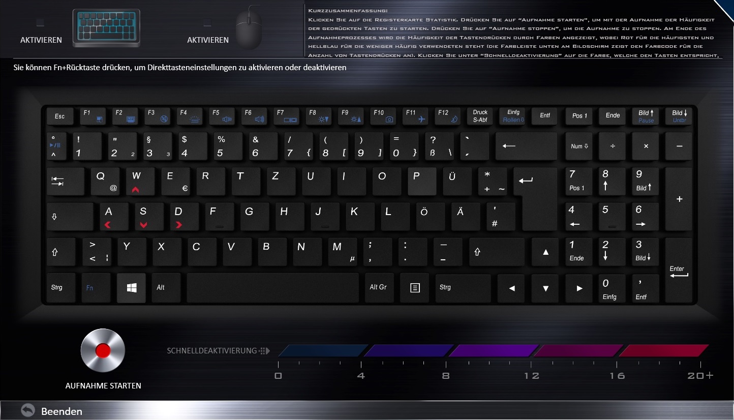Die Temperaturen sind ebenfalls ordentlich. Zwar knackt das Chassis unter Volllast stellenweise die 50-°C-Marke, der WASD-Bereich und die Handballenauflage werden jedoch nie unangenehm heiß. Im Idle-Betrieb gibt es kaum etwas zu bemängeln. Nach zwei Stunden Leerlauf machen es sich die Gehäuseoberflächen bei rund 32 °C (oben) bzw. 34 °C (unten) bequem.