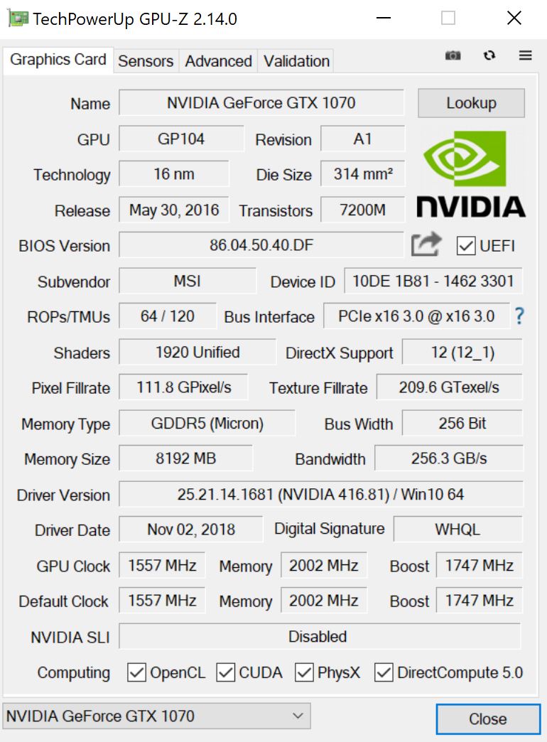 | NVIDIA GeForce GTX 1070 (Desktop) | |