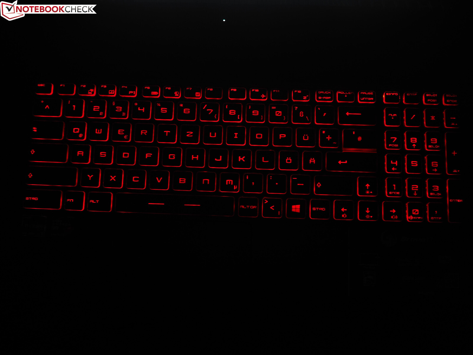 Um die Kosten etwas zu senken, spart sich MSI übrigens eine RGB-Beleuchtung. Passend zur roten Beschriftung wird das Keyboard rot beleuchtet. Das Tippgefühl würden wir als ordentlich bis gut bezeichnen. Es fällt weder besonders weich noch besonders hart aus. Kritik muss sich MSI vor allem für die Positionierung der Tastatur anhören. Da diese sehr weit unten liegt, bringt es die Handballenablage nur auf eine Höhe von 7,5 cm. Sofern man keine winzigen Hände hat, liegen die Ballen stets unangenehm auf der Kante oder rutschen gleich komplett vom Gehäuse herunter – ein unnötiger Designfehler.