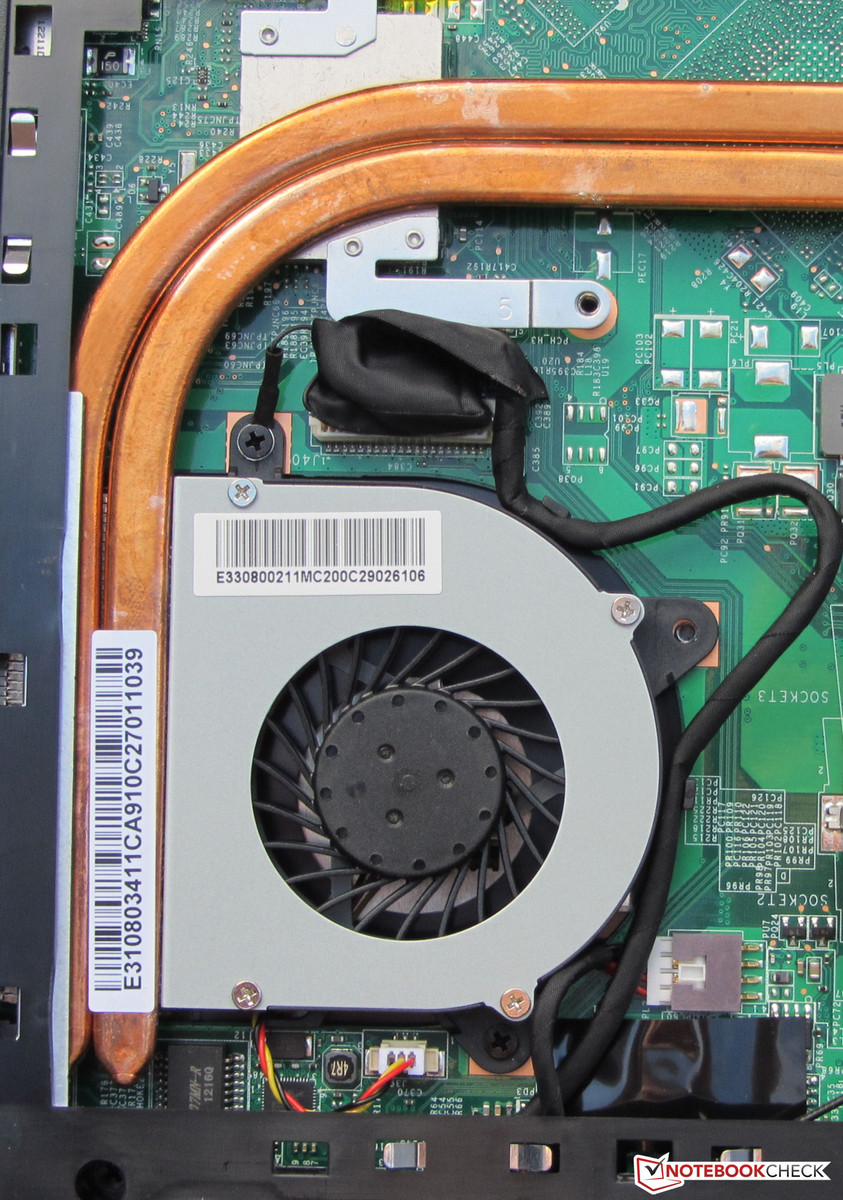Das CR41 zeigt sich ausgesprochen wartungsfreundlich. Die große Wartungsklappe gibt den Zugriff auf den Arbeitsspeicher, die Festplatte, das WLAN-Modul, den Kühler und den Prozessor frei. Die zwei Arbeitsspeicherbänke des 14-Zöllers sind mit jeweils einem vier-Gigabyte-Modul belegt. Damit ist das Gerät bereits mit den maximal möglichen 8 GB ausgerüstet (Herstellerangabe). Ein Festplattentausch ließe sich schnell bewerkstelligen. Einfach die alte Platte herausziehen, den Festplattenrahmen an die neue Platte montieren und diese in das Notebook einsetzen. Fertig. Gut gefällt uns der volle Zugriff auf den Lüfter. Man könnte diesen zwecks Reinigung sogar problemlos ausbauen. Auch der Zugriff auf den Prozessor ist gegeben.