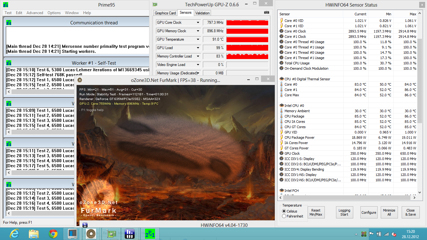 Um ihre volle Leistungsfähigkeit abrufen zu können, sind moderne Prozessoren vor allem auf ihren Turbo Boost angewiesen. Der Core i5-3210M unseres Testkandidaten hält sowohl bei Single- als auch Multi-Threading seine jeweils maximale Taktrate von 3,1 respektive 2,9 GHz, was in entsprechend guten Benchmarkergebnissen resultiert.