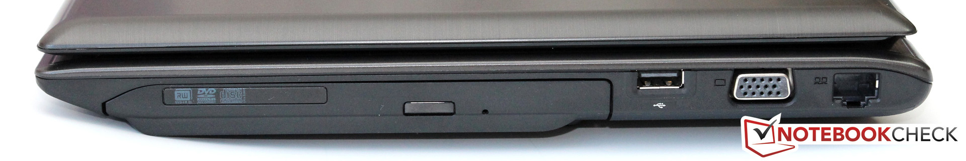 Gegenüber dem GE60 büßt das CX61 einen USB-Port ein und muss sich mit insgesamt 3 USB-Anschlüssen (2x USB 3.0 links, 1x USB 2.0 rechts) begnügen. Die weitere Ausstattung offenbart nur Standardkost wie VGA, HDMI oder GBit-LAN. Wir hätten uns darüber hinaus noch einen DisplayPort für hochauflösende 27- und 30-Zoll-LCDs gewünscht, welche sich per HDMI oftmals nicht optimal ansteuern lassen. Im Gegenzug wollen wir MSI für die zwei Audioanschlüsse – anstelle einer kombinierten Headset-Buchse – sowie die gute Erreichbarkeit der Schnittstellen loben. Der Hersteller hätte allerdings die Abstände zwischen einigen Ports noch etwas größer wählen sollen.